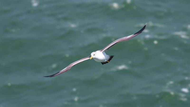 Le Vol : Son vol est très caractéristique. Il alterne des battements d'ailes rapides et peu profonds avec de longs vols planés, les ailes tenues droites et rigides, rasant les vagues. Un goéland aura des battements d'ailes plus amples et souples.