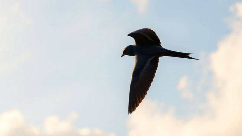 Flight Silhouette: Its shape is distinctive. Its wings are very long, thin, and curved in the shape of a "scythe" or "boomerang," perfectly adapted for fast and agile swift flight.