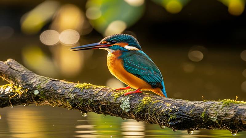 Look for perches: Kingfishers hunt from low perches, such as bare branches, sturdy reeds, or stakes overhanging the water. Locate these strategic points and be patient. Once it spots its prey, its dive is lightning-fast!