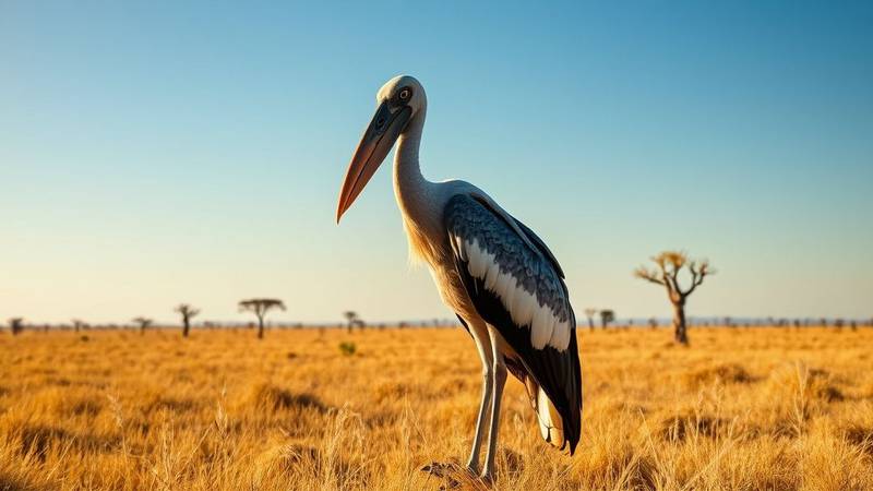The Marabou Stork is widespread throughout sub-Saharan Africa. It is highly adaptable, thriving in both wet and arid habitats. You can find them in open savannas, grasslands, swamps, and along the shores of rivers and lakes. Their ability to coexist with humans means they are also a common sight in urban areas, particularly near fishing villages and refuse dumps, which provide a reliable food source.