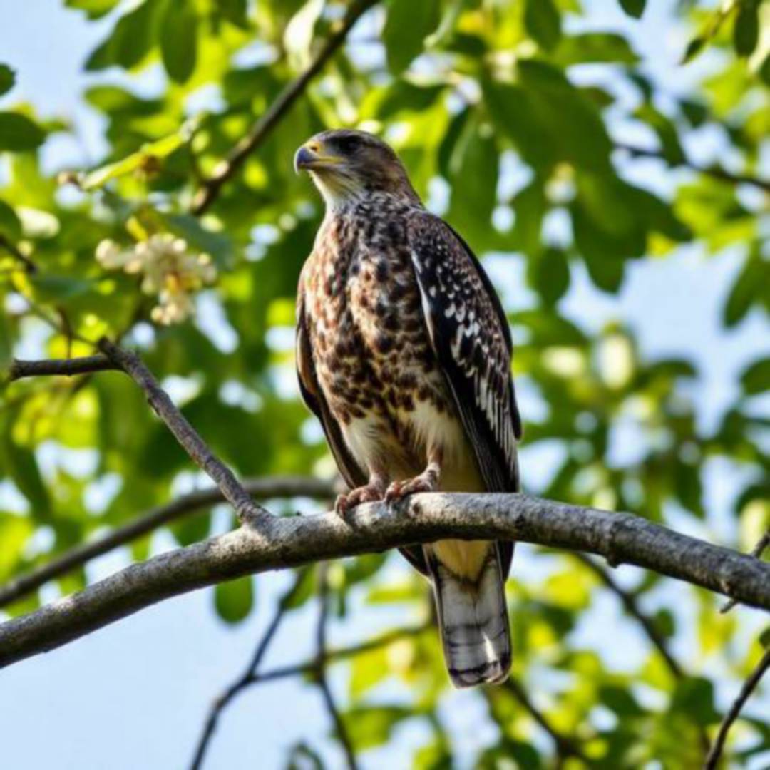 The Common Buzzard is a raptor similar in size to an Osprey but with a stockier silhouette, broader wings, and a shorter tail. Its plumage is extremely variable, ranging from very dark brown to almost white, but it never has the distinct black mask and white breastplate of the Osprey. Its hunting method is also different, primarily targeting small mammals and birds on the ground, and its flight is not as "angled."