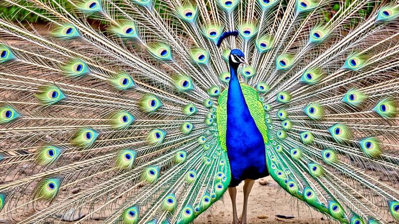 The surprising call: The peacock's call, often described as a harsh "may-awe" or "kee-ow," is powerful and piercing. Don't be surprised by this contrast between its visual beauty and its vocalization, which is a key element of its territorial and courtship communication.