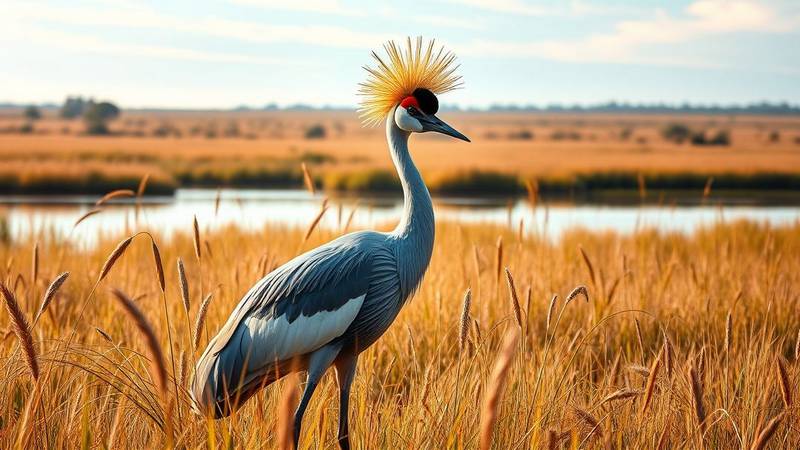 La Grue royale, un joyau des savanes africaines, reconnaissable entre mille à sa spectaculaire couronne de plumes dorées.