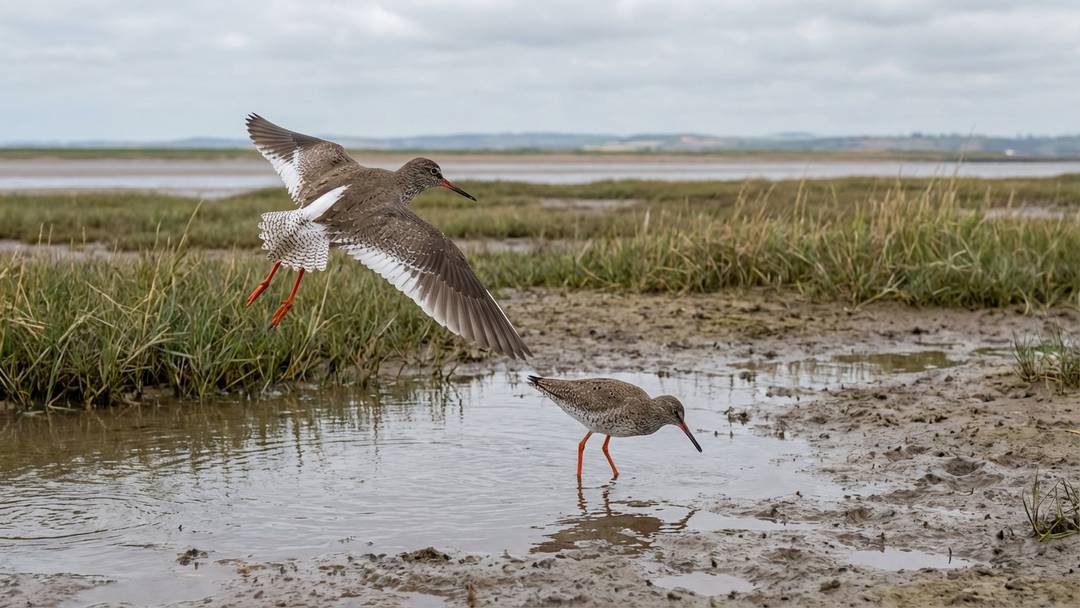 L'attitude nerveuse : Observez son comportement. Il hoche souvent la tête de bas en haut ("bobbing") lorsqu'il est inquiet. Contrairement à d'autres limicoles qui restent silencieux pour se cacher, le Gambette préfère s'envoler bruyamment.