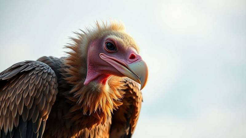 The bare head and neck of the Lappet-faced Vulture are a hygienic adaptation. When feeding on carcasses, a feathered head would quickly become soiled with blood and remains, which could cause infections. The bare skin is easier to clean and keep healthy under the African sun.