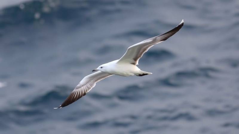 Flight Pattern: Its flight is highly characteristic, consisting of a series of rapid, shallow wingbeats followed by long glides on stiff, straight wings, often just above the waves. Gulls have a more flexible, flapping flight.